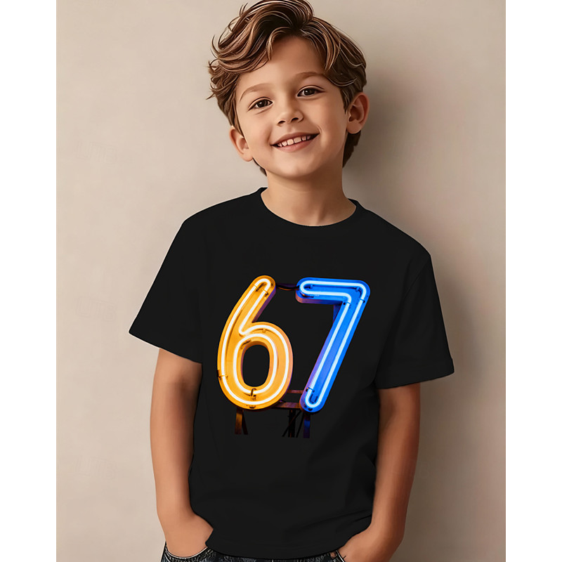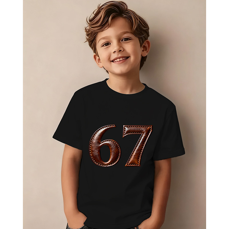 Cotton Kids Boys' Black Graphic Funny Slang 67 T shirt Blouse Crew Neck Short Sleeve Outdoor Dailywear Fashion Streetwear Designer Printing Summer