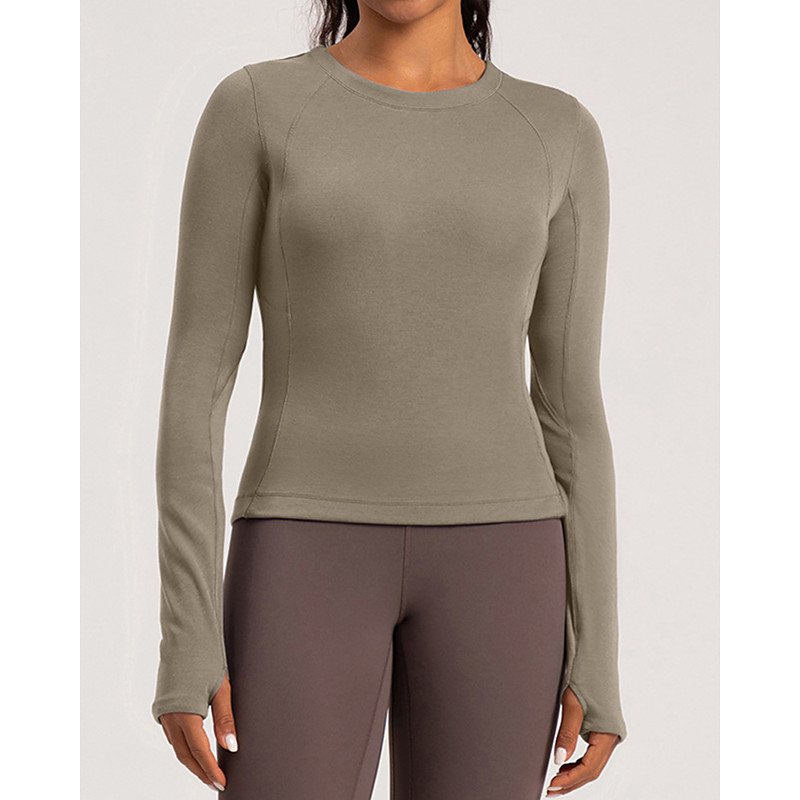 Women's Solid Colored Tennis Shirt Sport Top Stylish Elastic Sweat-Wicking Breathable Golf Pickleball Yoga Crew Neck Top Winter Black Red Purple Wool Tennis Clothing