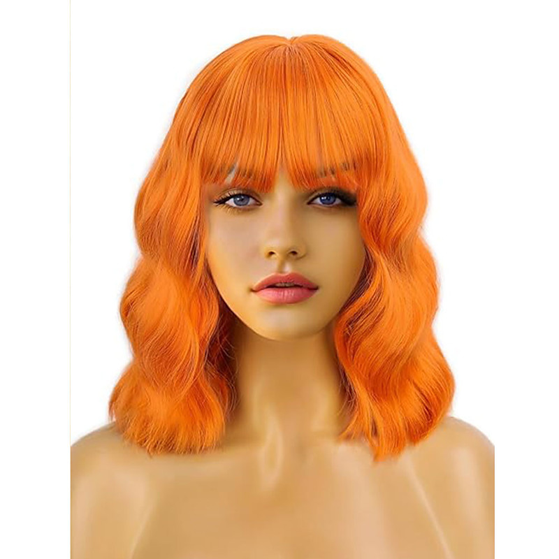 Green Wigs for Women Cosplay Wigs for Women Bobo Green Red Blue Purple Orange Black Pink Wig Short Curly Synthetic Wig with Bangs ChristmasPartyWigs St.Patrick's Day Wigs