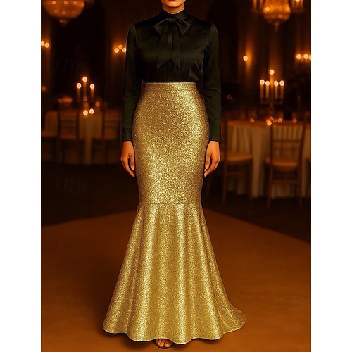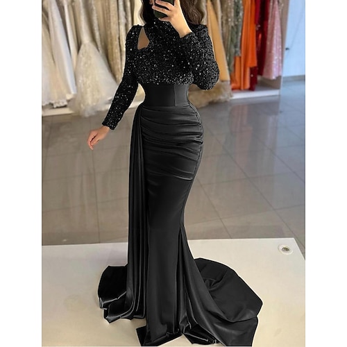 Sirena Tromba Strascico a Terra Lunghezza al pavimento Abiti da Ballo Abito da Sera Da principessa Abito formale Elegante Scintillante Stile Celebrità Manica Lunga Collo Alto Festa in giardino
