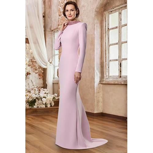 Per donna Abito da smoking Sirena Tromba Sirena Ospite di nozze Crepe Elasticizzato Elegante Spacco Alto Manica Lunga Lunghezza al pavimento Scollo a V