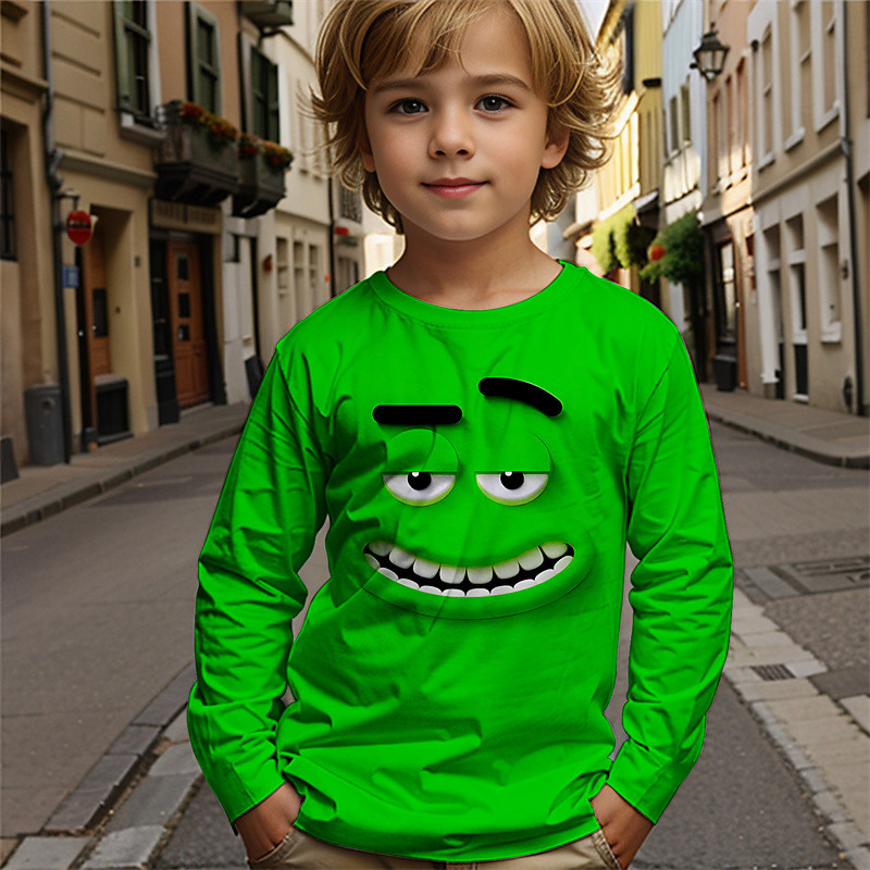 Boys Cartoon Funny Smile Face T shirt Tee Long Sleeve 3D Print Fall Winter Fashion Basic Kids 4-12 Years Crew Neck Outdoor Casual Daily Regular Fit