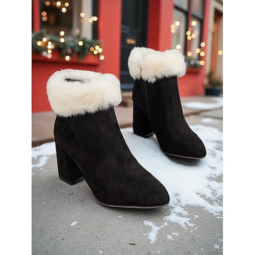 stivaletti da donna con tacco a blocco in pelle scamosciata marrone - stivaletti a punta autunno/inverno per stile urbano, pendolarismo o abbigliamento casual quotidiano