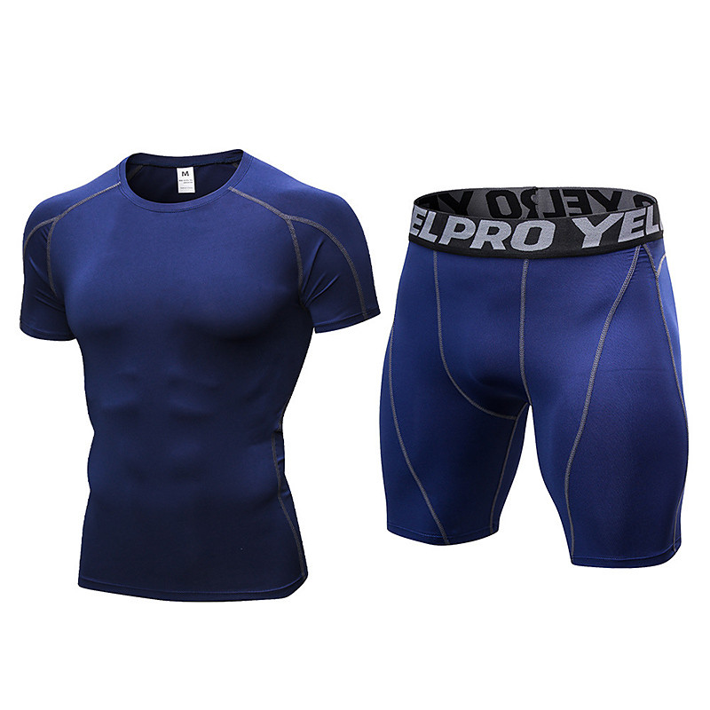 Men's Workout Suits Base Layer Top Bottom 2 Piece Sports Set Camouflage Clothing Suit Summer Camouflage dark gray Black Gym Basketball Athletic High Waist Quick Dry Breathable Short Sleeve Sport