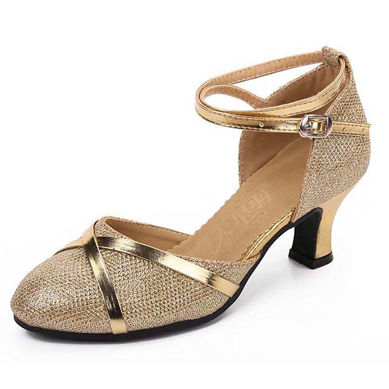 Women's Glitter Latin Dance Heels – Strappy Ballroom Performance Shoes with Buckle for Salsa, Tango Party Events