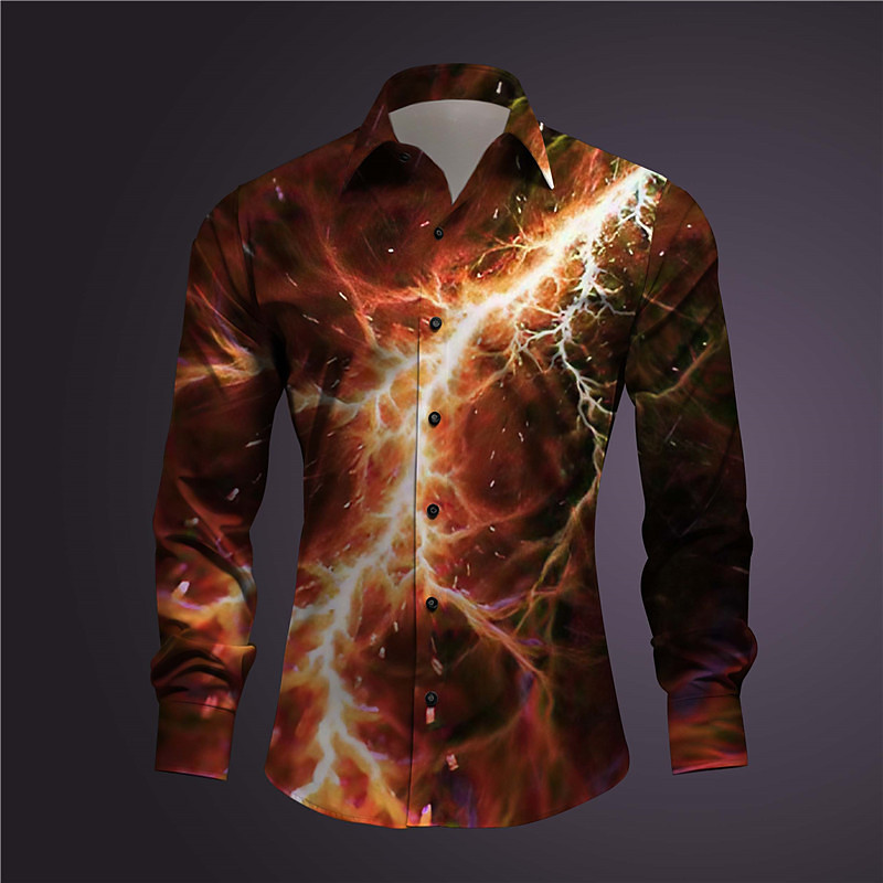 Men's Optical Illusion Lightning Shirt Button Up Shirt Long Sleeve Dark Punk Gothic Style Outdoor Holiday Summer Spring Turndown 3D Print Collared Shirts Blue Red Purple Orange Green