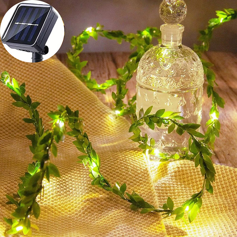Solar LED Ivy String Lights 5m 50LEDs Outdoor Waterproof 8 Modes Lighting Artificial Garland Lights Green Leaf Fairy Lights for Home Office Bedroom Wedding Party