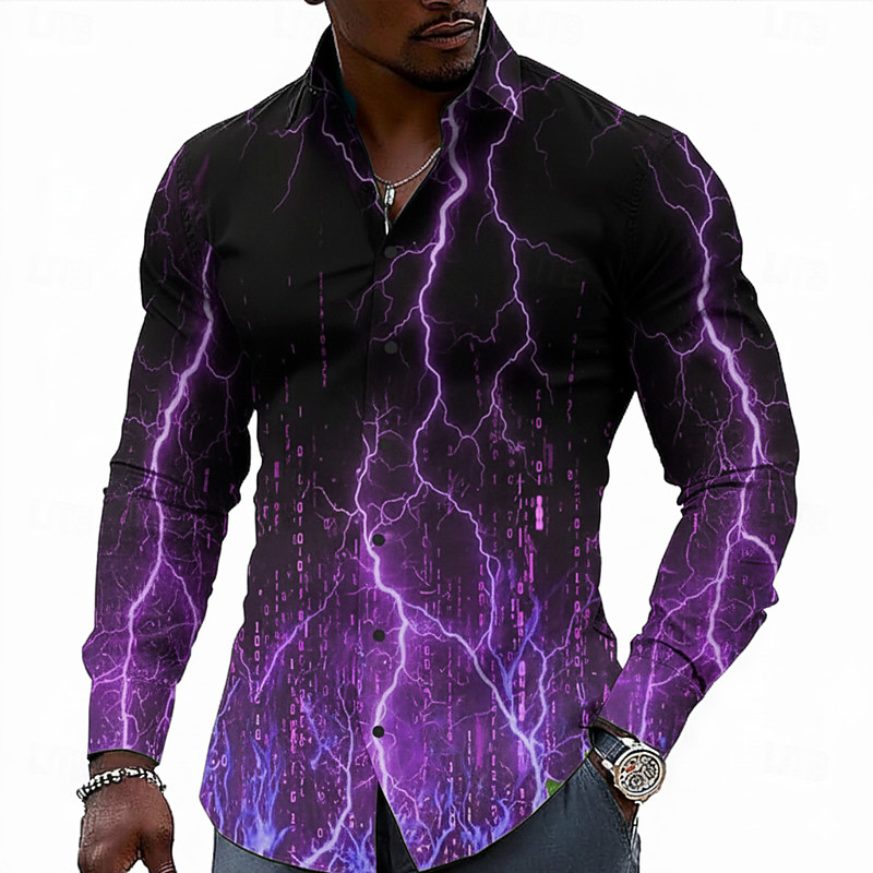 Men's Geometric Lightening Shirt Button Up Shirt Long Sleeve Fashion Casual Holiday Casual Daily Spring Fall Turndown 3D Print Collared Shirts Pink Purple Green