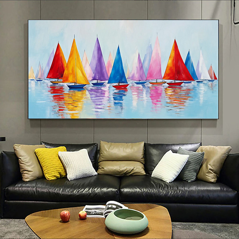 Colorfull Sailboats Canvas Painting Wall Art Sailing Club Wall Decor Sailboats Poster Sailing Paint Sail Boat Boat Art Nautical Decor Boat Painting Seascape Wall Decor