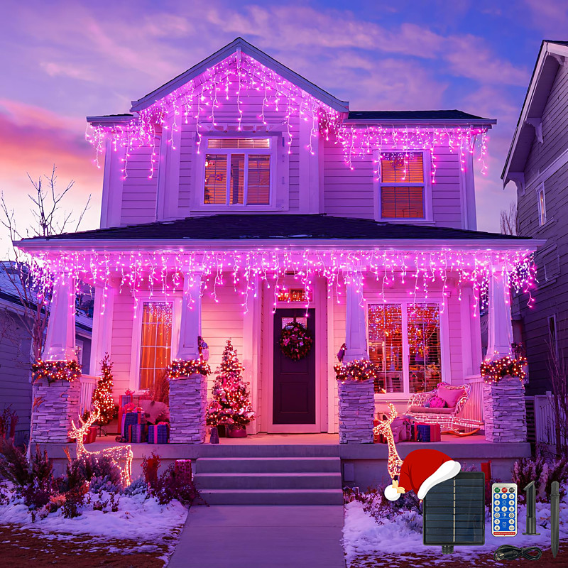 Solar Waterproof Icicle Lights 33ft 400 Leds 48 Drops 8 Function Timer Remote Control Clear Wire Connectable String Lights Courtyard balcony tree porch eaves decorative lights