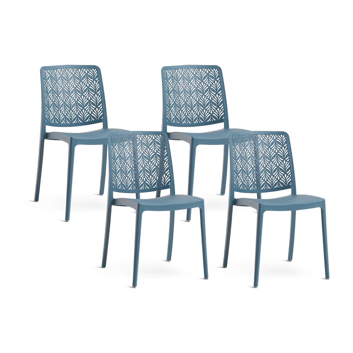 RATTATAN 4er-Set stapelbare Stühle aus Polypropylen mit Glasfasern für Garten oder Innenbereich, wasserabweisend und widerstandsfähig - YARA - Petrol