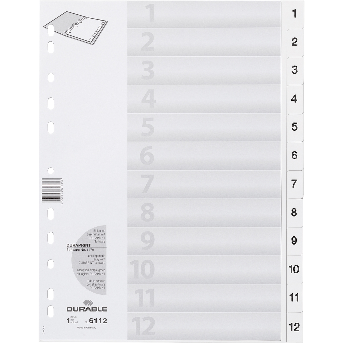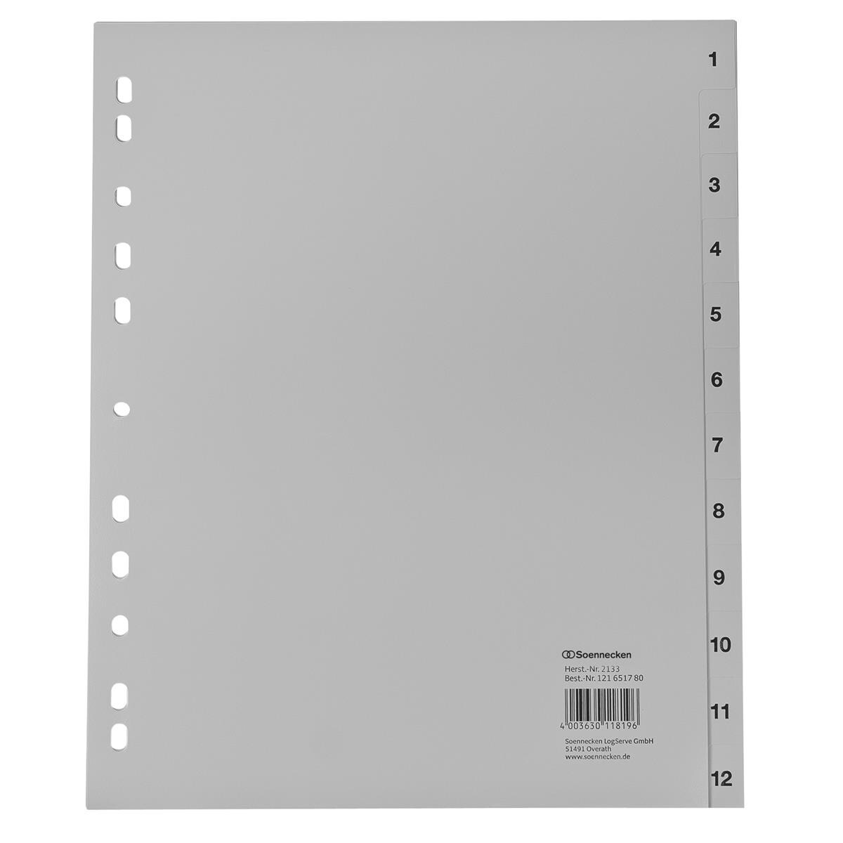 Soennecken Register 2133 DIN A4 1-12 volle Höhe Überbreite PP grau