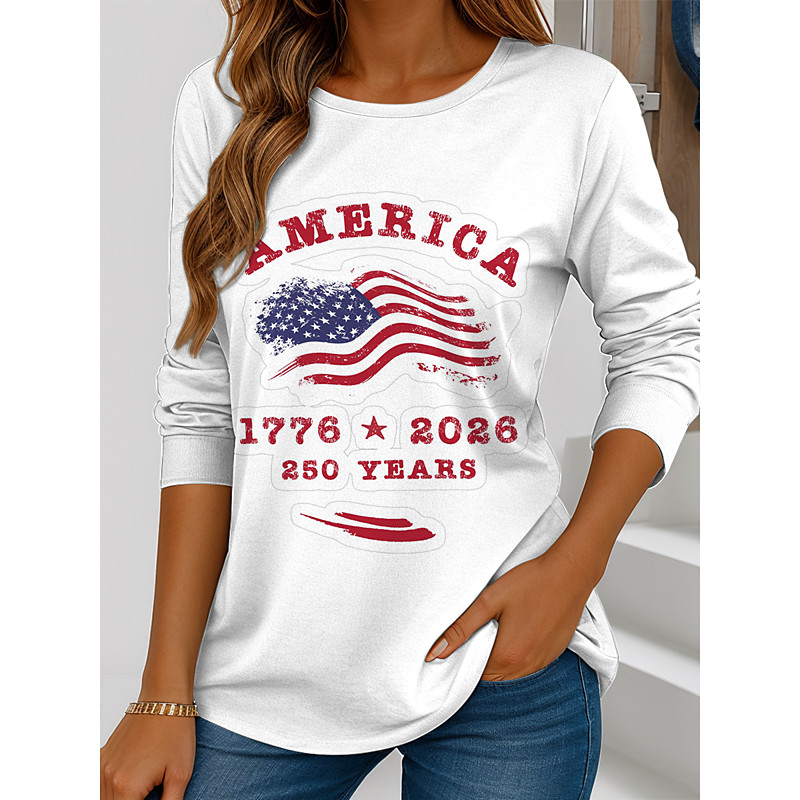American 250th Women's Independence Day T Shirt Graphic USA Flag Fashion Stylish Classic Long Sleeve Crew Neck Round Neck Regular Tops Daily Weekend Print Blue Black White Red Summer Spring Fall
