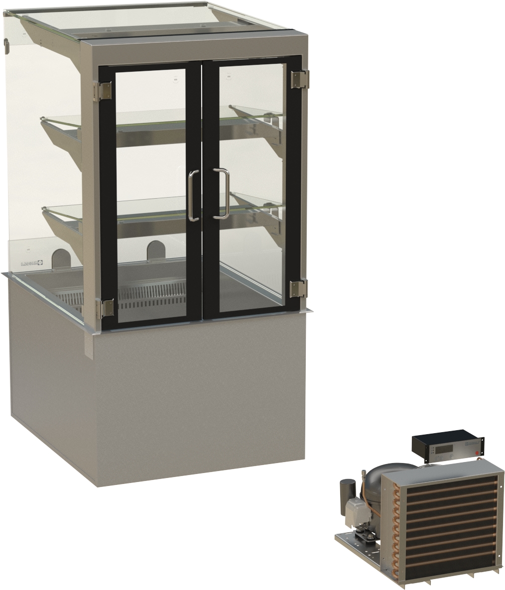 Showcase "Göteborg" eckig, SBO, für 1,5xGN1/1, 3 Auslagen 150mm Tiefe, 597x710/400x710mm (BxHxT) steckerfertig mit Schnellkupplung