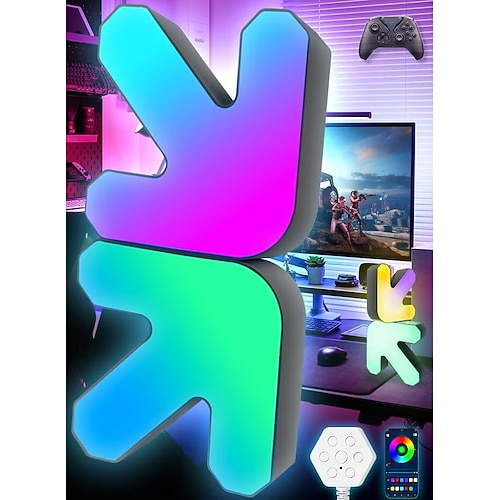 Pfeilförmige RGB-Farblicht-Wandleuchte, Tischleuchte, Dekoleuchte für E-Sport-Räume und Spielhallen, rhythmische Stimmungsleuchte, USB-C-Anschluss, Bluetooth