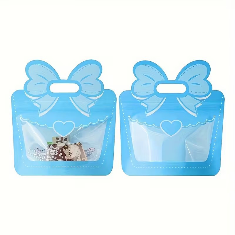 12-Pack Bow Candy Gift Bags, Self-Sealing Plastic Treat Bags with Handle, Stand-Up Bowknot Snack Bags for Candy, Party Favors, Greeting Cards Postcard Packaging