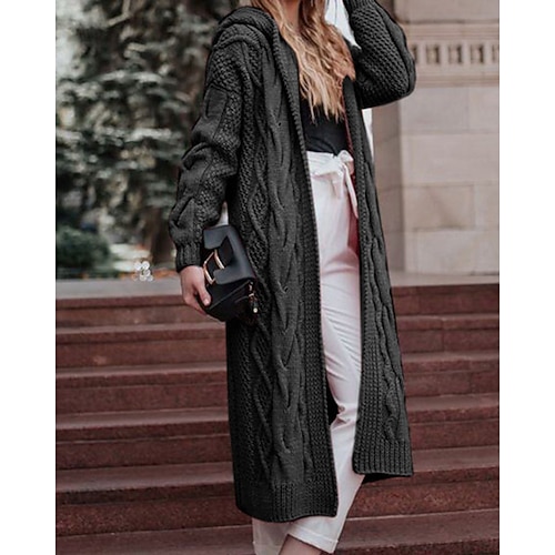 Per donna Felpa Cardigan Elegante Moda Streetwear Tinta unica Con Cappuccio Lavorato a maglia Con cappuccio Manica Lunga Top lunghi Maglia All'aperto Casa Quotidiano Bianco Giallo Autunno Inverno