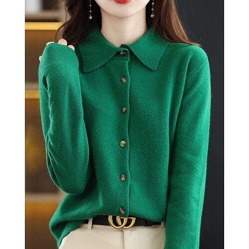 Per donna Felpa Cardigan Moda Streetwear Casual Tinta unica Colletto Polo Bottoni Lavorato a maglia Manica Lunga Top Regolari Maglia Quotidiano Ferie Uscire Nero Rosso Primavera Autunno