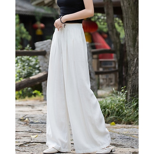 Per donna Pantaloni in cotone e lino Gamba larga Chinos Vacanza Streetwear Casual Lunghezza intera Vita media Semplice Pieghettato Tasca Fascia Elastica Confortevole Inelastico Quotidiano Casa