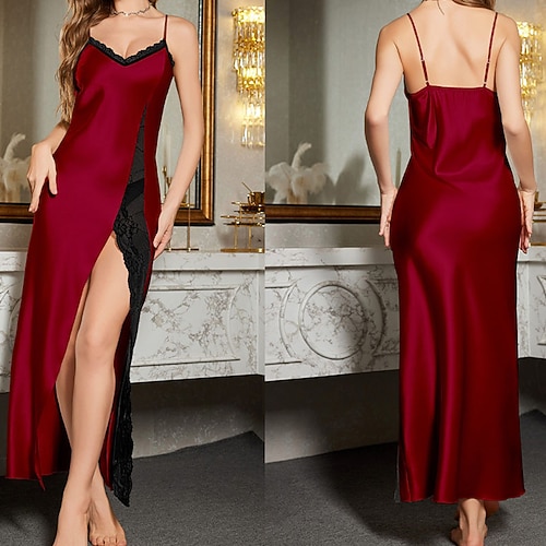 Per donna Pigiama Accappatoio Camicia da Notte Casual Morbido Raso Colore Puro Pizzo Patchwork Casa Da letto Mezza Manica Scollo a V Argento Giallo Rosa Vino Estate Vestibilità comoda
