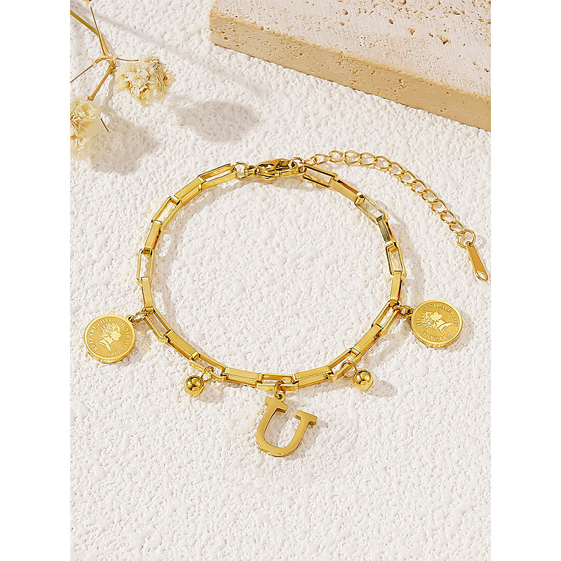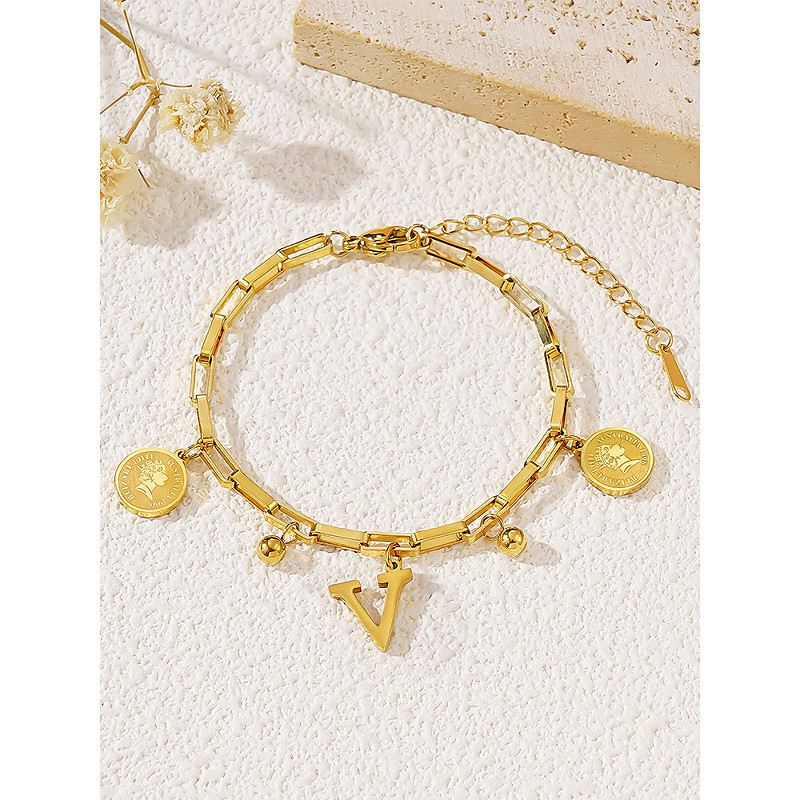 Women's Gold-Plated Alphabet Letter Bracelet with Coin and Ball Charms, Adjustable Chain, Stylish Christmas Gift for Her, Personalised Jewelry Accessory