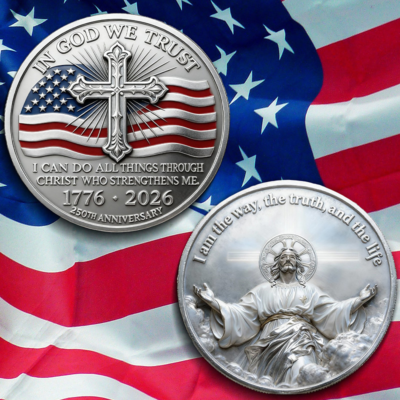 250th Anniversary Christian Commemorative Coin In God We Trust, Faith Religious Collectible Coin, Double-Sided Engraved Memorial Token, Christian Gift for Believers, Church, Prayer, Home Display
