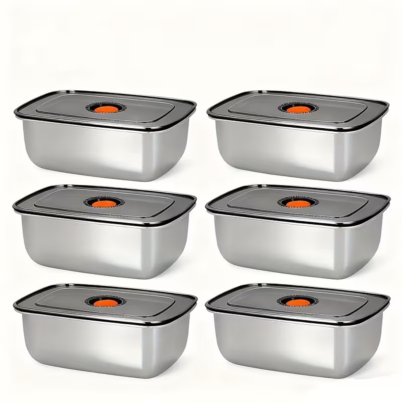 6-Piece 50.72oz Stainless Steel Food Storage Containers, Lunch Boxes for Refrigerator and Freezer, Durable Kitchen Storage Set
