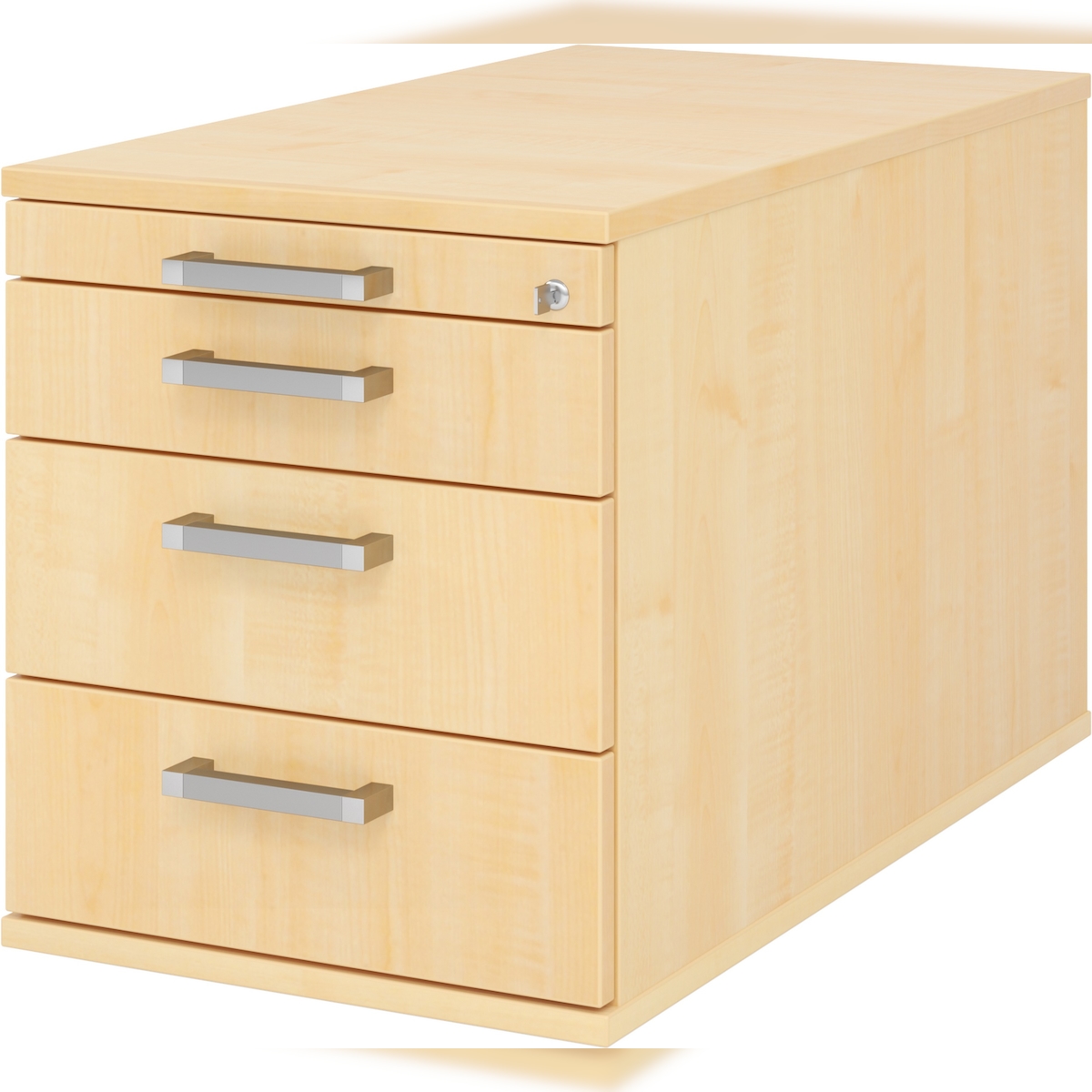 bümö Rollcontainer mit Schubladen, Container abschließbar aus Holz in Ahorn - Rollwagen für's Büro als Schreibtisch Unterschrank, Bürocontainer od.