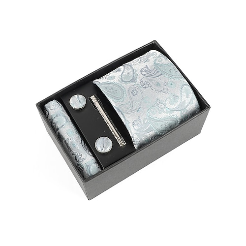 set regalo da uomo con cravatta paisley in poliestere, gemelli, fazzoletto da taschino e fermacravatta, perfetto per matrimoni e regali