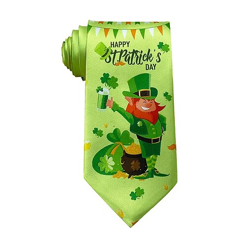 cravatta da uomo in poliestere, con fantasia multipla con trifogli e motivi di San Patrizio, perfetta per San Patrizio, Carnevale e occasioni festive