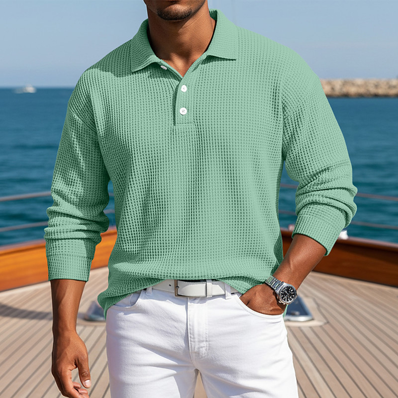 Men's Waffle Polo Shirts Textured Casual Business Ribbed Polo Collar Long Sleeve Fashion Solid Color Buttons Plain Fall Spring Fall Spring Summer Regular Fit Black Light Green Purple Green Khaki
