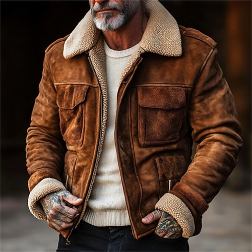 Per uomo Giacca in finta pelle scamosciata Giacca Cargo Vacanza Quotidiano Resistente all'usura Tasca Autunno Inverno Semplice Moda Classico Bavero Regolare Nero Marrone Grigio Giacca