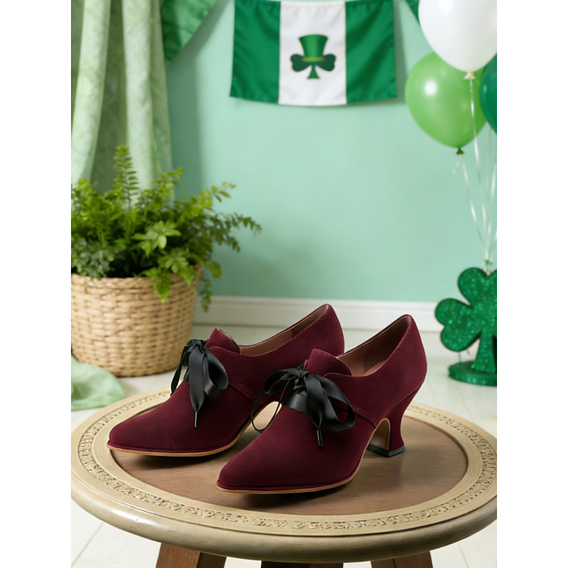 Women's Faux Suede Lace-Up Oxford Shoes with Block Heels – Vintage Style Brogue Pumps for Casual and Office Wear
