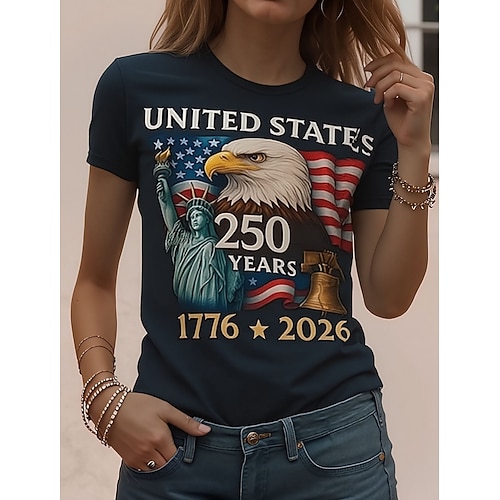 Maglietta Patriottica Giorno dell'Indipendenza Americana 250° Anniversario per Donne T-Shirt Grafica Bandiera Nazionale Vintage Elegante Classica Maniche Corte Collo Giro Collo Rotondo Stampa