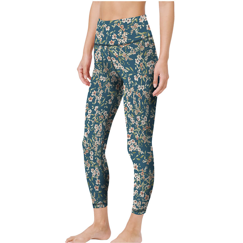 Women's Yoga Pants Butt Lift Tummy Control High Waist Gym Workout Running Fitness Cropped Leggings Floral Pink Brown Green Fall Sports Activewear High Elasticity