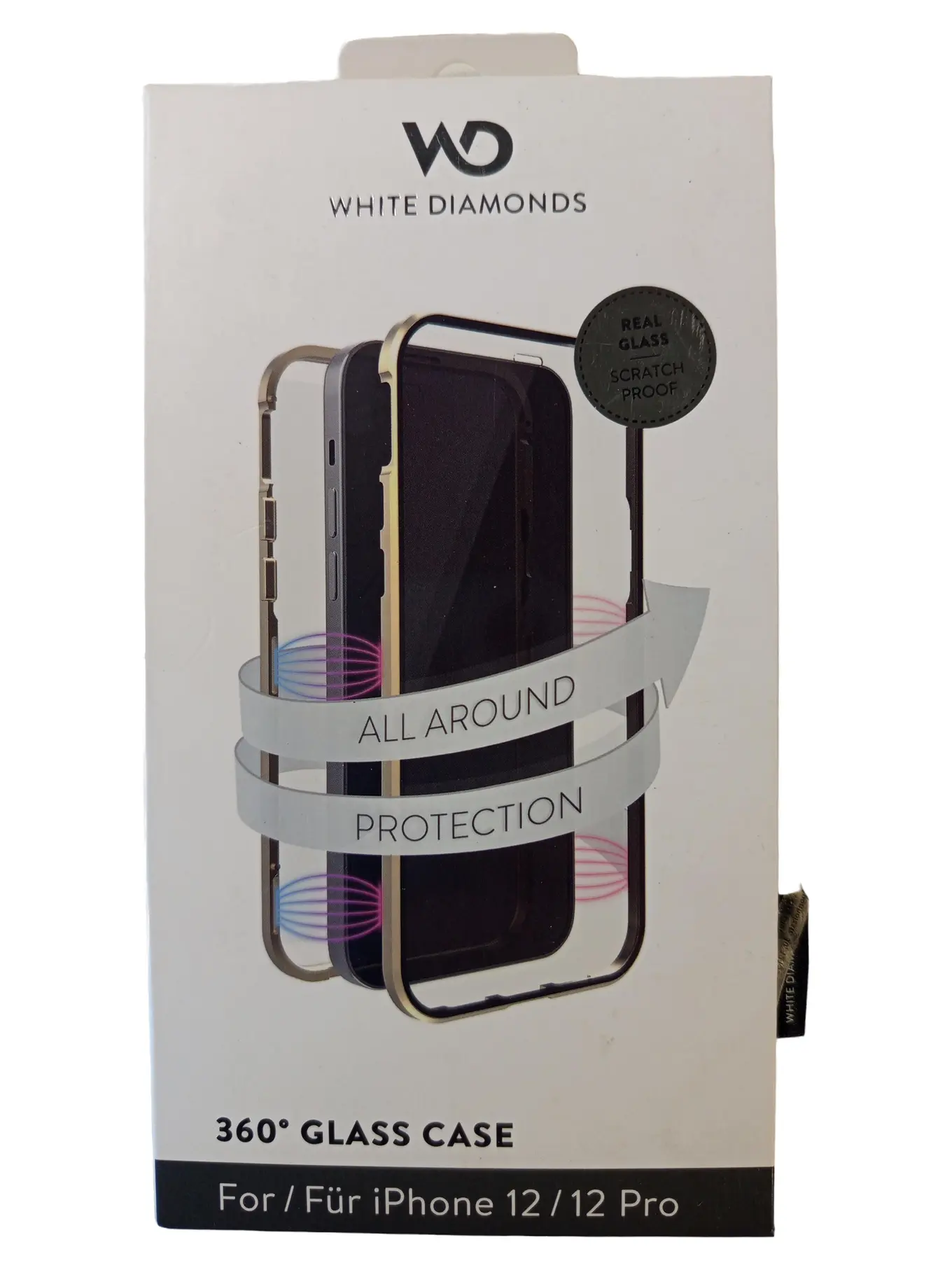 WHITE DIAMONDS 360° Glass Case Hülle iPhone 12/12 Pro Transparent Gold Aluminiumrahmen 9H Glas