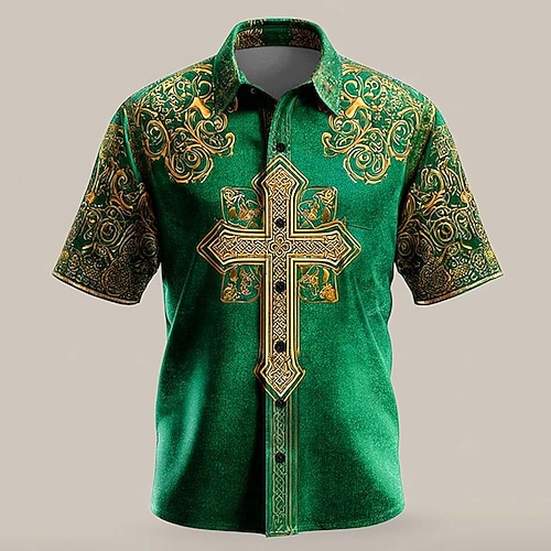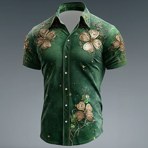 Herren Kleeblatt Waffel-Poloshirts Kurzarm Polo-Shirts Hemden mit Kragen Lässig Business-Casual Party-Abendmode Alltagskleidung Festival-Outfit 3D-Druck Knöpfe Sommer Weiß 1 Schwarz Felsen Grün