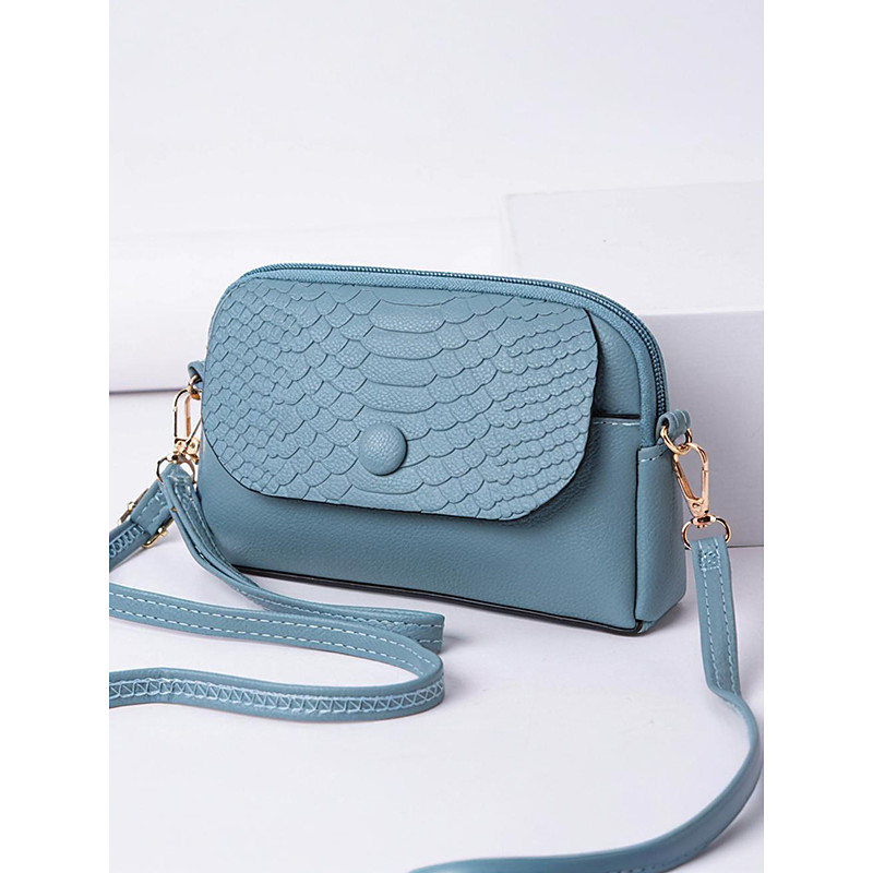 Women's Faux Leather Crossbody Wristlet Bag with Croc-Embossed Flap – Elegant Small Shoulder Purse for Daily Use, Travel Work