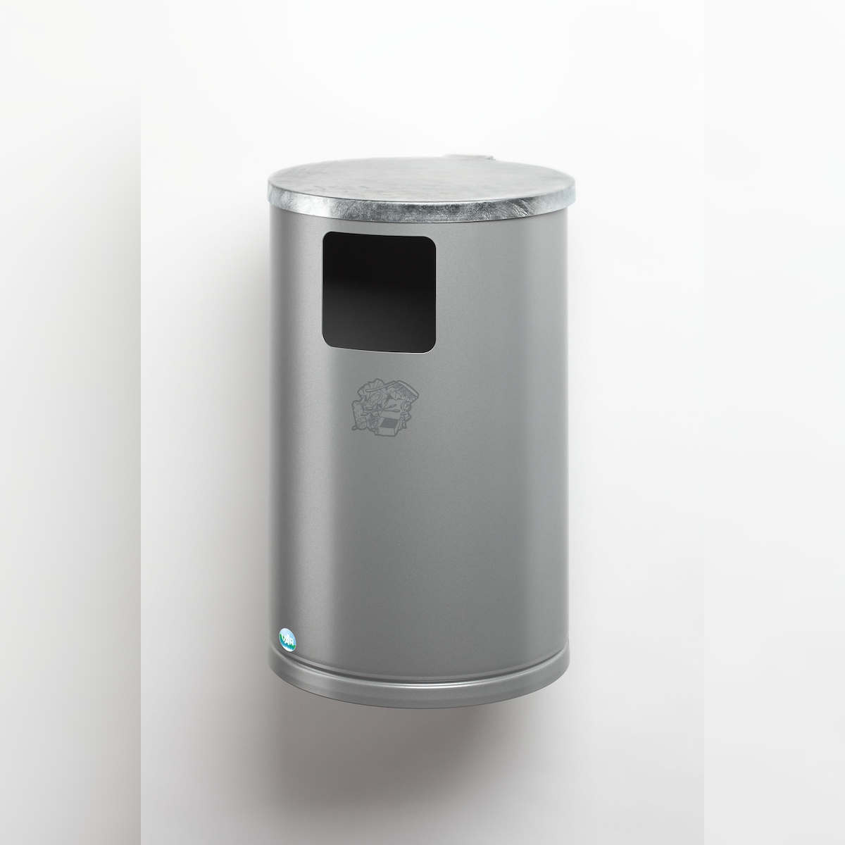 PROREGAL Abfallsammler zur Wand- oder Rohrbefestigung | 30 Liter, HxBxT 62x30x30cm | Verzinkter Stahl | Silber | Mülleimer Abfalleimer Müllkorb
