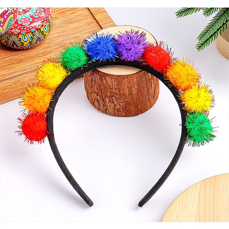 Rainbow Pom Pom Headband – Carnival Mardi Gras Party Accessory