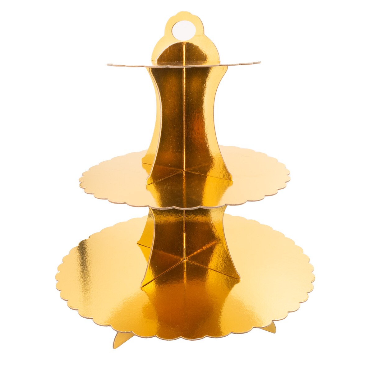 Intirilife Etagere aus Karton mit 3 Ebenen in Gold - 30 / 24.5 / 18.5 x 33 cm - Tortenständer aus Pappe, Muffinständer Cupcake Ständer