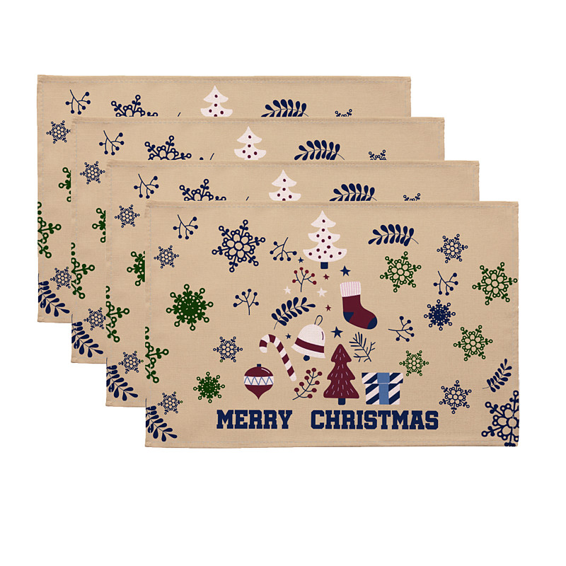 4pcs/set Christmas Placemats – Cotton and Linen Seasonal Winter Xmas Table Mats with Snowman Reindeer Design for Outdoor Indoor Home Party Kitchen Dining Decor, 30x45cm (12x18 Inch)