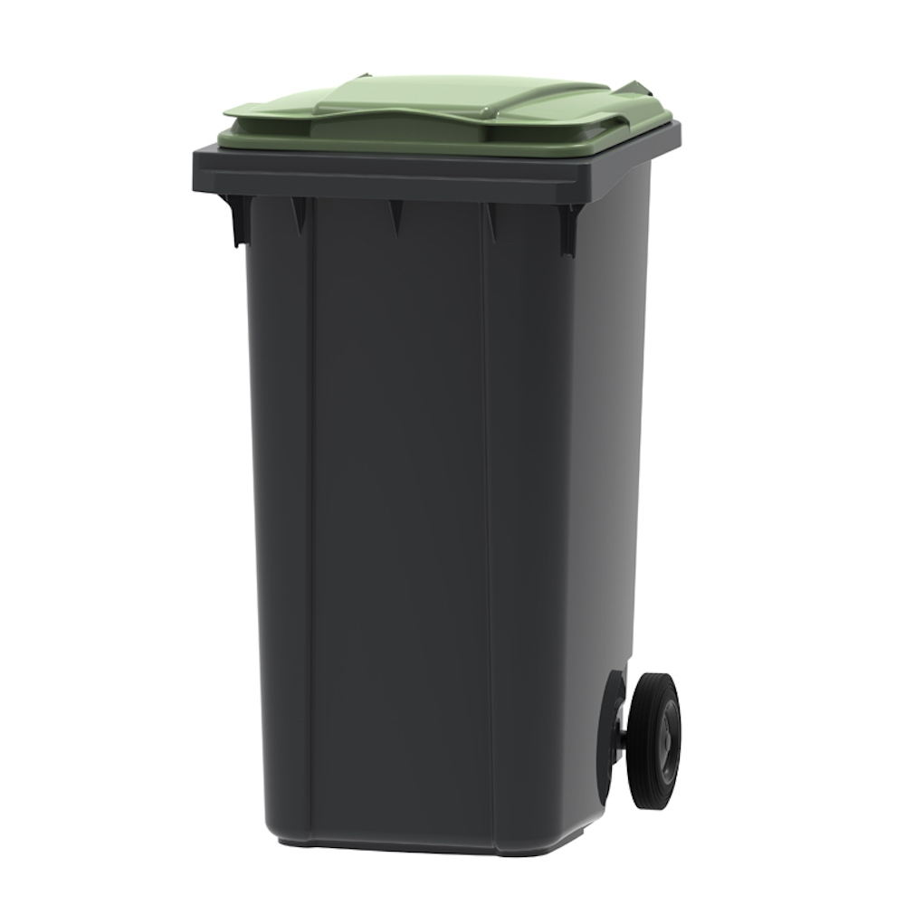 PROREGAL Premium 2-Rad-Mülltonne MGB | 240 Liter, HxBxT 107,9x58,3x73,7cm | HDPE-Kunststoff | Grau, Deckel Grün