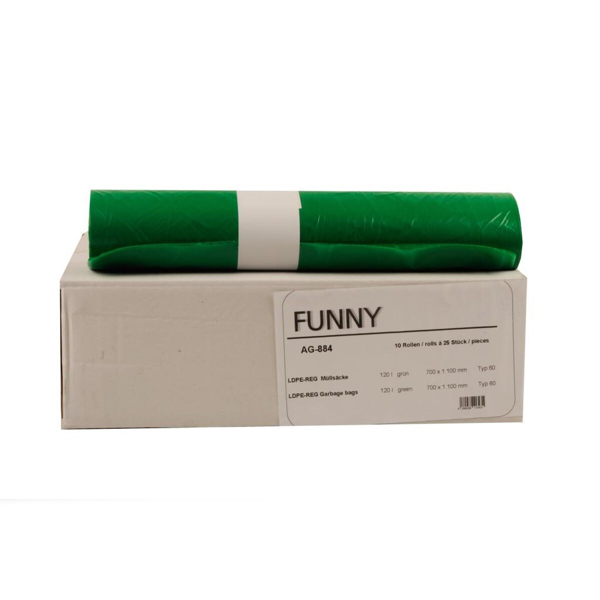Plock GmbH Müllbeutel Funny - 250 Abfallbeutel - grün - ca. 120 L - Müllsäcke Typ 60