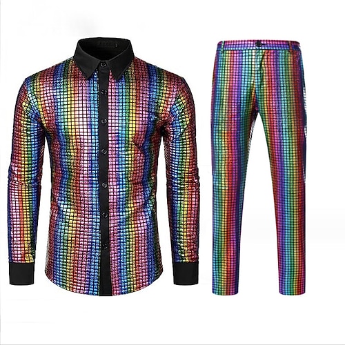 Retrò Vintage Disco Anni '80 Pantaloni Camicia Lunghe Disco Costume Per uomo Costume di Carnevale Mascherata martedì grasso Performance Parata dell'Orgoglio Mese dell'orgoglio Adulti Camicia Pantaloni