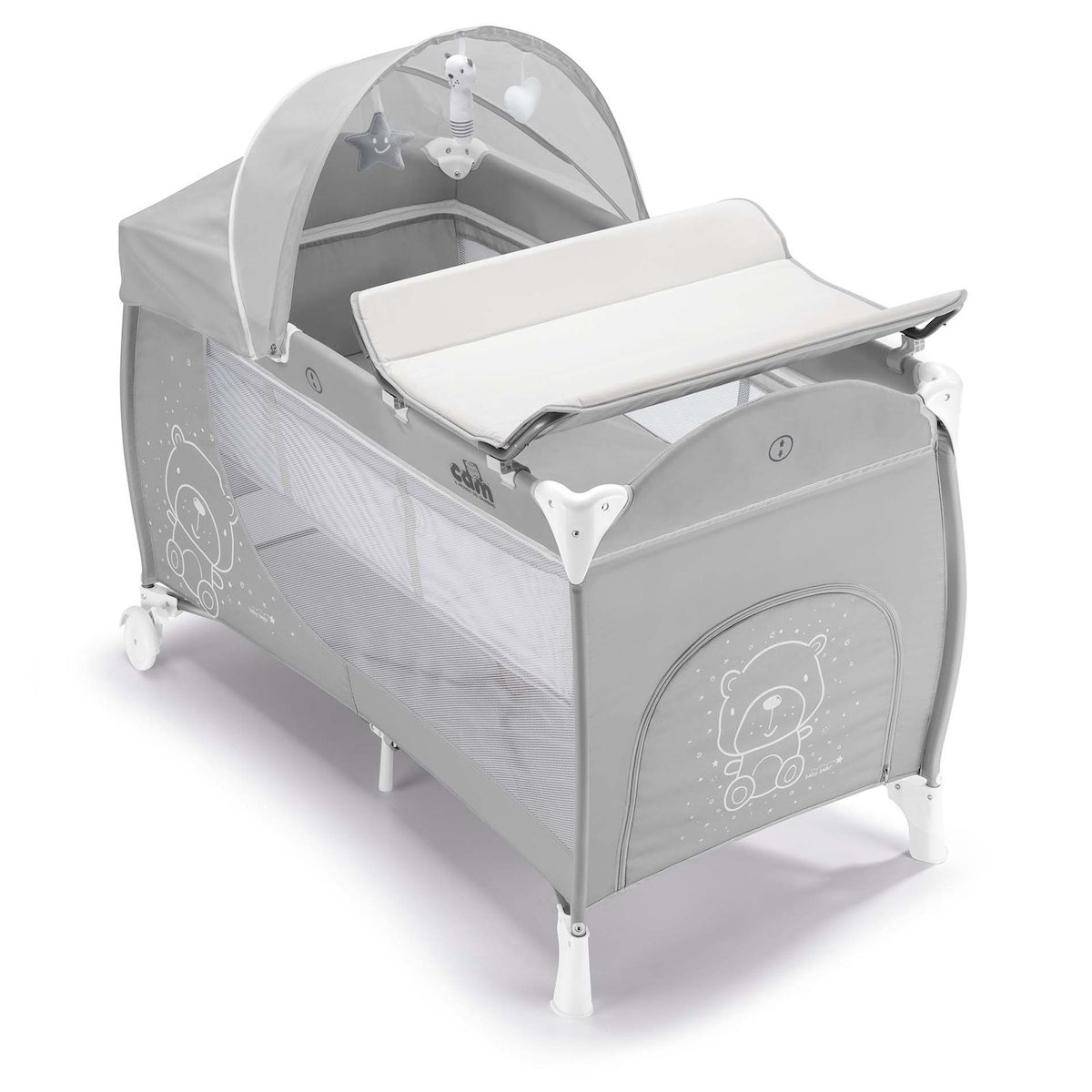 Cam il mondo del bambino Baby Reisebett Daily Plus | für 0-36 Monate | Teddy Grau | Kinderreisebett inklusive Wickelunterlage und Transporttasche