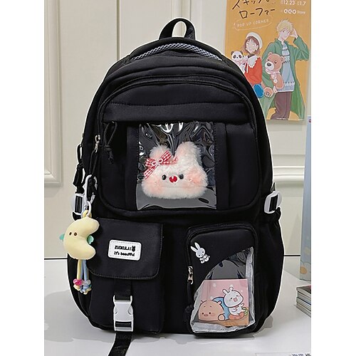 Kawaii-Rucksack mit durchsichtigem Fenster für Teenager-Mädchen – Büchertasche mit Plüschhasen-Motiv und mehreren Taschen, süße Schultasche für die Mittelschule oder den täglichen Gebrauch