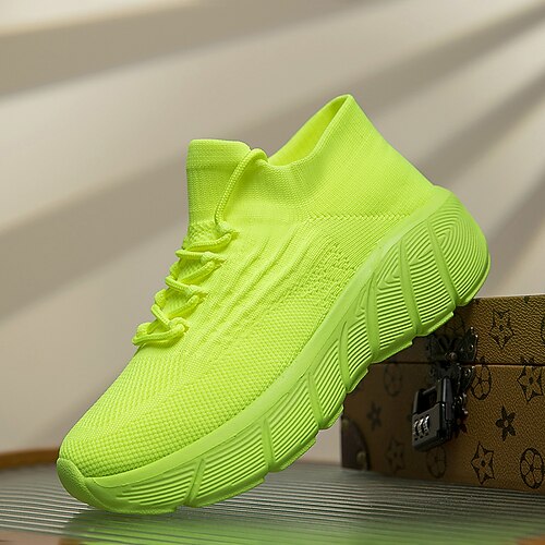 Gelbe Flyknit-Ballerinas mit breiter Zehenpartie für Damen – atmungsaktive Freizeitschuhe für die Arbeit, Reisen und Frühlingsausflüge