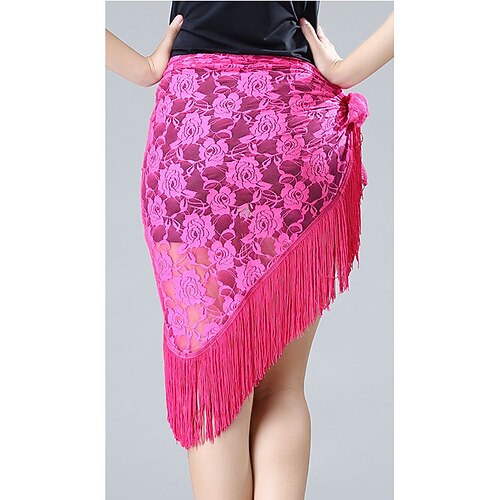 roter asymmetrischer Fransenrock für lateinamerikanische Tänze, Damen