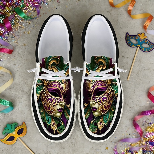 Scarpe slip-on da uomo con maschera veneziana per il carnevale scarpe da barca artistiche in tela casual per celebrazioni di Mardi Gras feste in costume festival passeggiate e stile urbano creativo